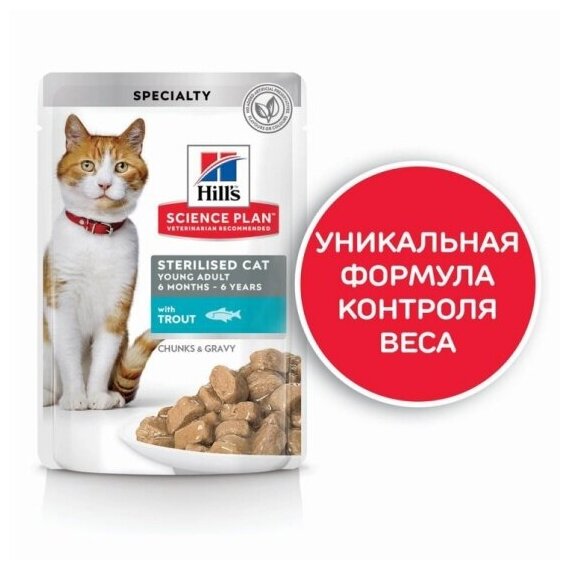 Влажный корм Hill's Science Plan для молодых стерилизованных кошек и кастрированных котов, пауч с форелью в соусе, 12 шт. х 85 г