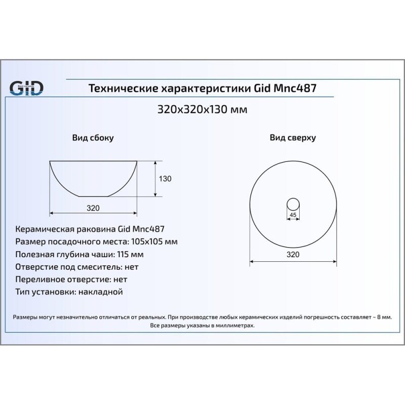 GID Раковина накладная Gid Mnc487