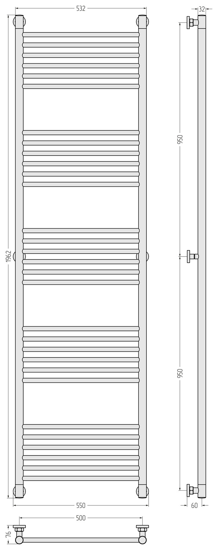 Полотенцесушитель водяной Сунержа, ДР “Богема“ прямая 1900х500 (Без покрытия)