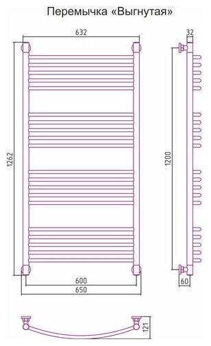 Купить Полотенцесушитель водяной 1200х600 перемычка выгнутая Сунержа Богема+ 00-0221-1260