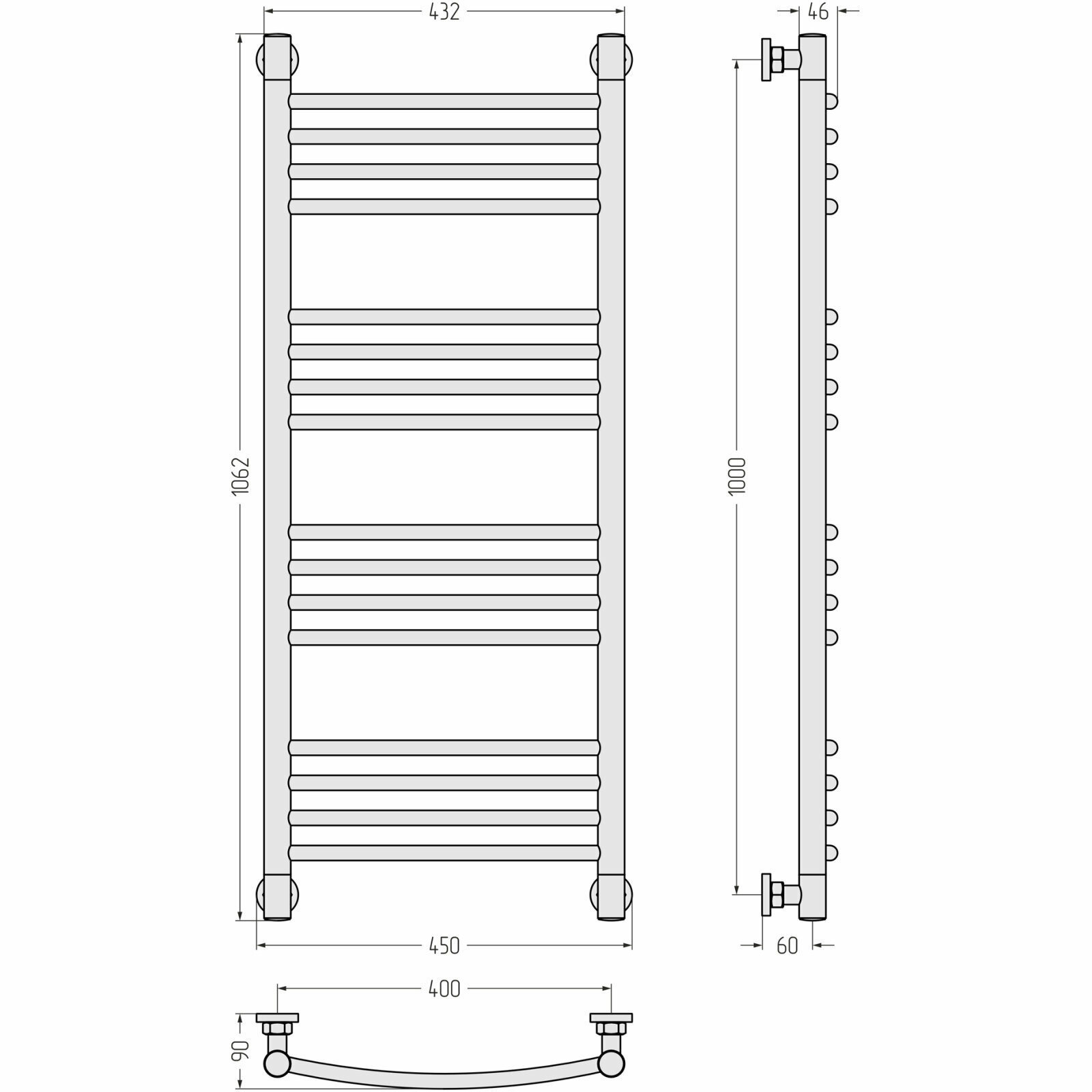 Водяной полотенцесушитель Сунержа Богема+ (выгнутая) 1000x400 арт. 00-0221-1040