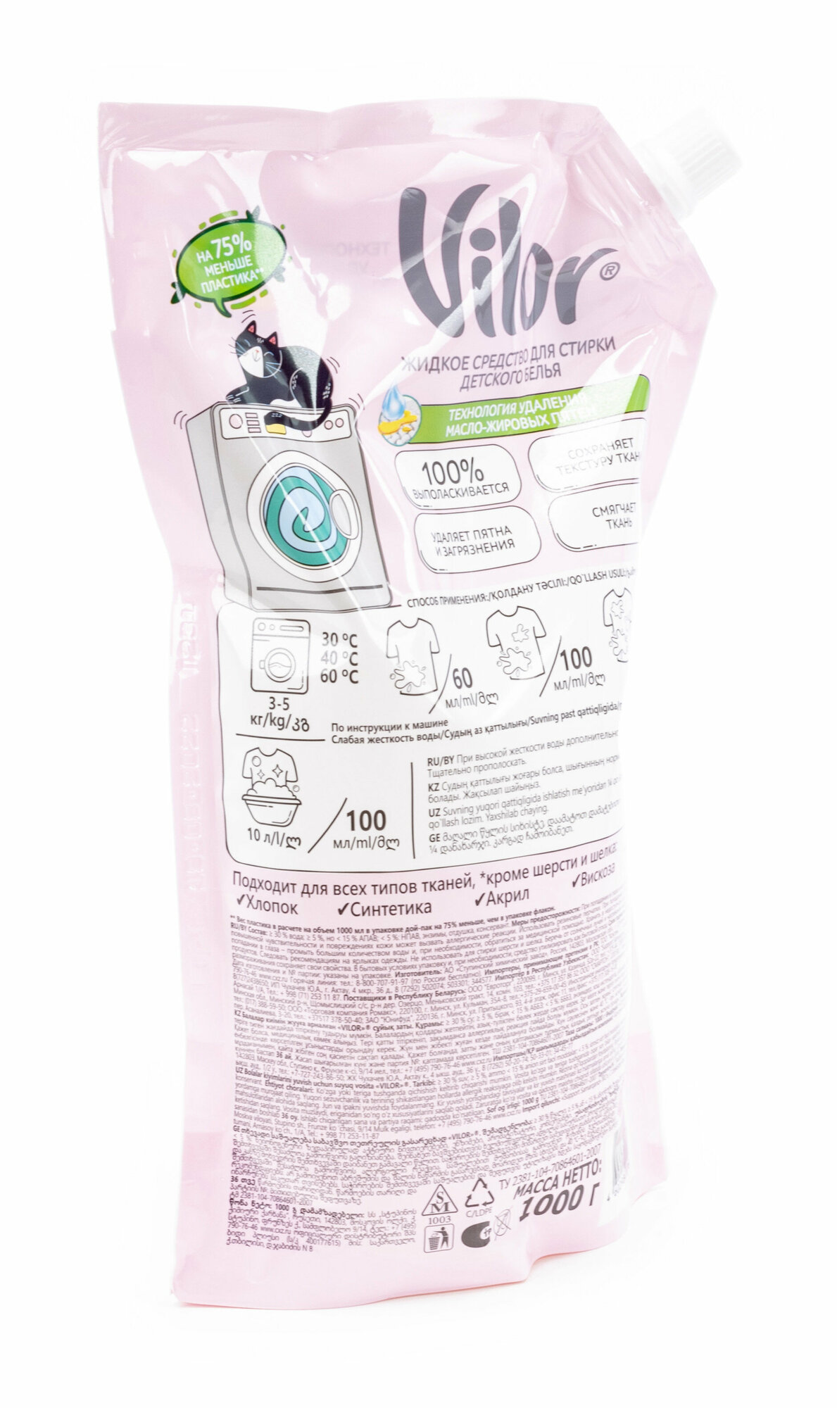 Гель для стирки детский Vilor / Вилор жидкий дой-пак с дозатором 1л / средство для белья