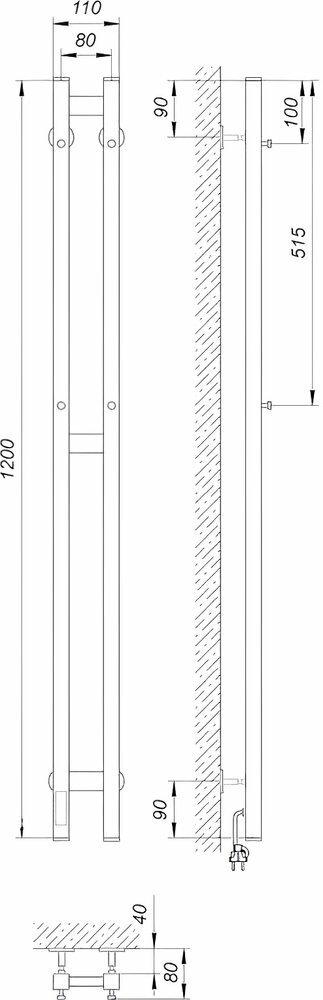 Полотенцесушитель электрический Laris Прайм Дуэт 80x1200 черный