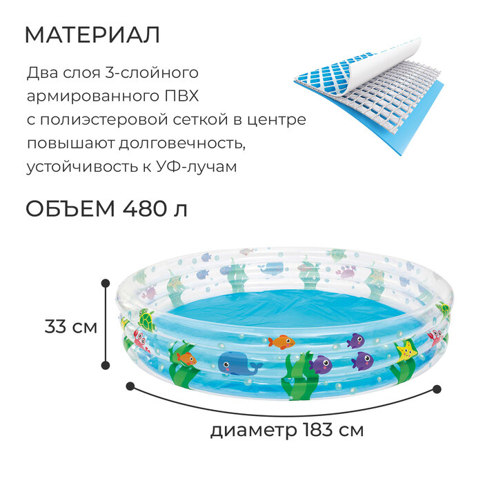 Бассейн надувной «Подводный мир», 183 х 33 см, 51005 Bestway интересное: