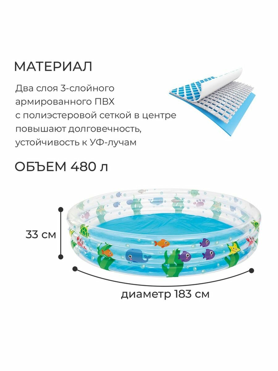 Бассейн надувной "Подводный мир", 183 х 33 см, 51005 Bestway