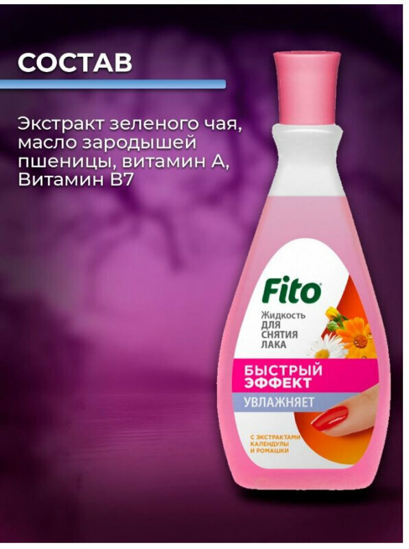 Fito косметик Жидкость для снятия лака Быстрый эффект с экстрактами календулы и ромашки 100 мл