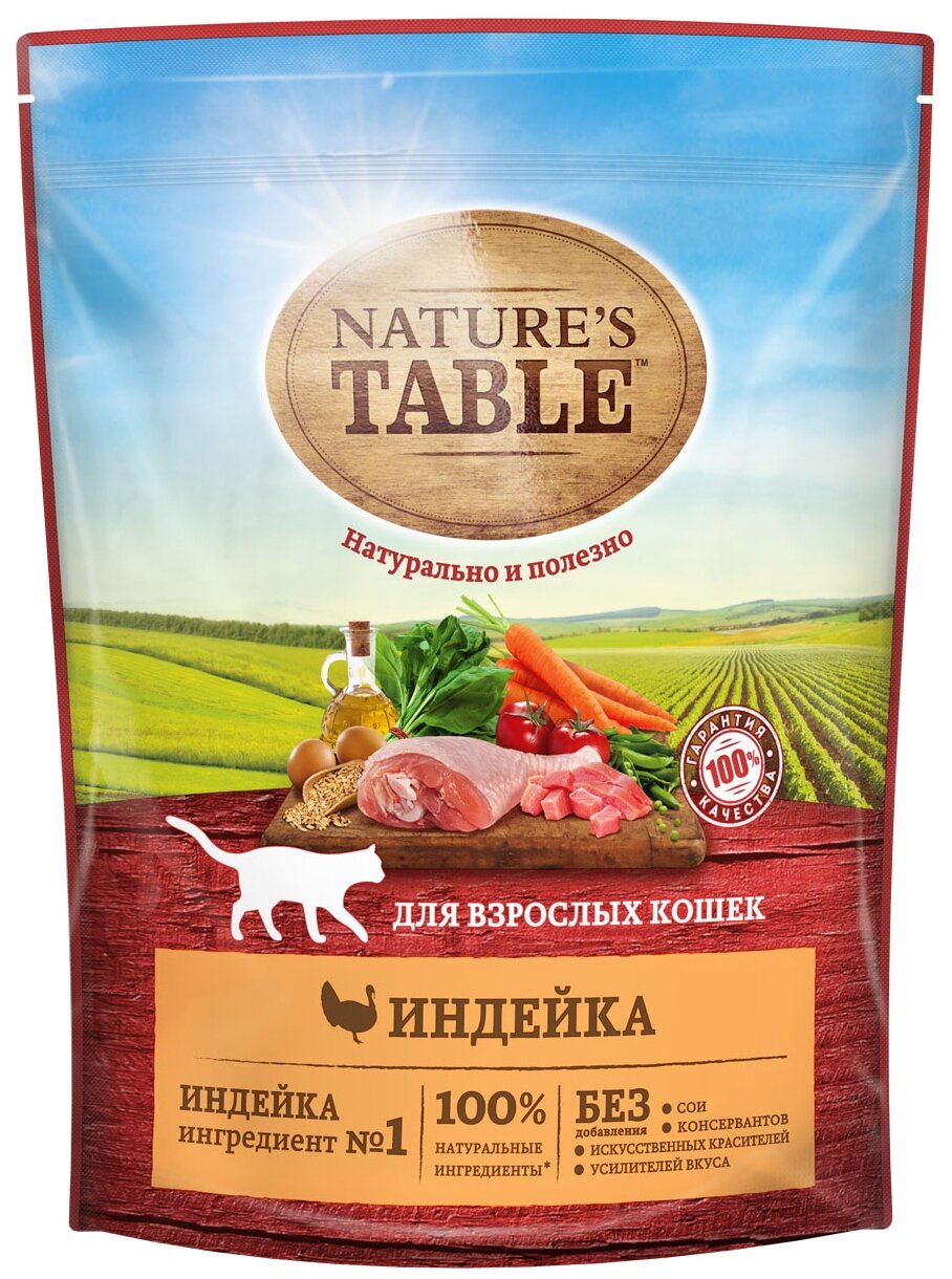 Корм сухой NATURE'S TABLE Nature’s Table для взрослых кошек, Индейка, 1,1кг