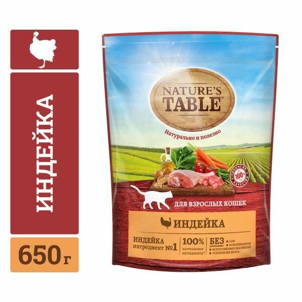 Nature's Table Сухой корм Natures Table для кошек, индейка, 650 г