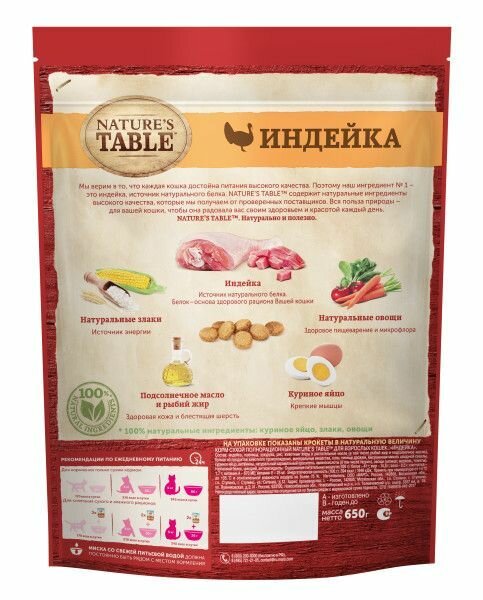 Natures Table Сухой корм для кошек с индейкой, 10179277, 0,650 кг (10 шт)