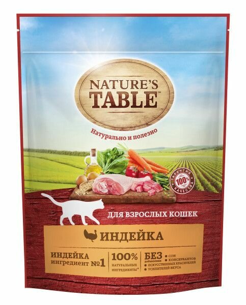 Natures Table Сухой корм Nature’s Table для взрослых кошек, Индейка, 1,1кг 10225521, 1,1 кг