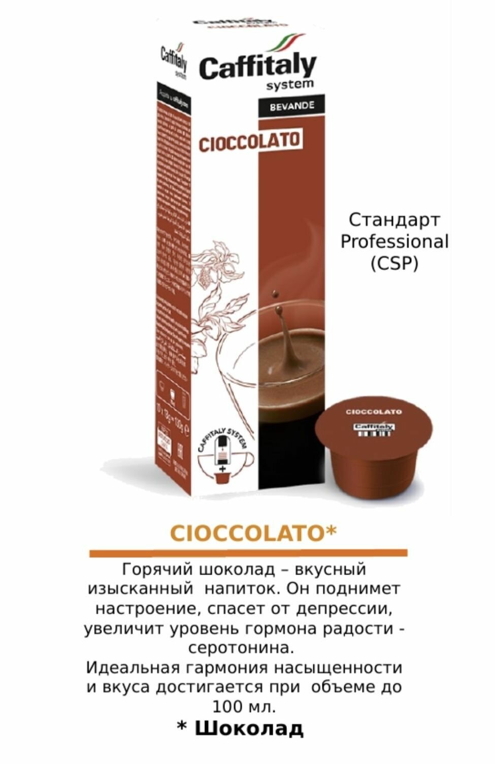 Капсулы для кофемашины Caffitaly , Cioccolato, - горячий шоколад 10 капсул