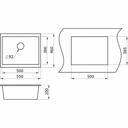Кухонная мойка кварцевая Granula GR-5551 квадратная подстольная односекционная, подстольная, чаша 500х380, цвет черный (5551bl)