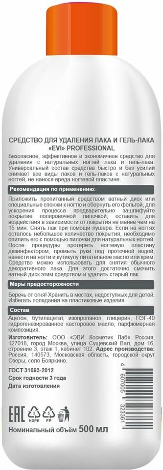Средство для снятия лака и гель-лака EVI professional 500мл