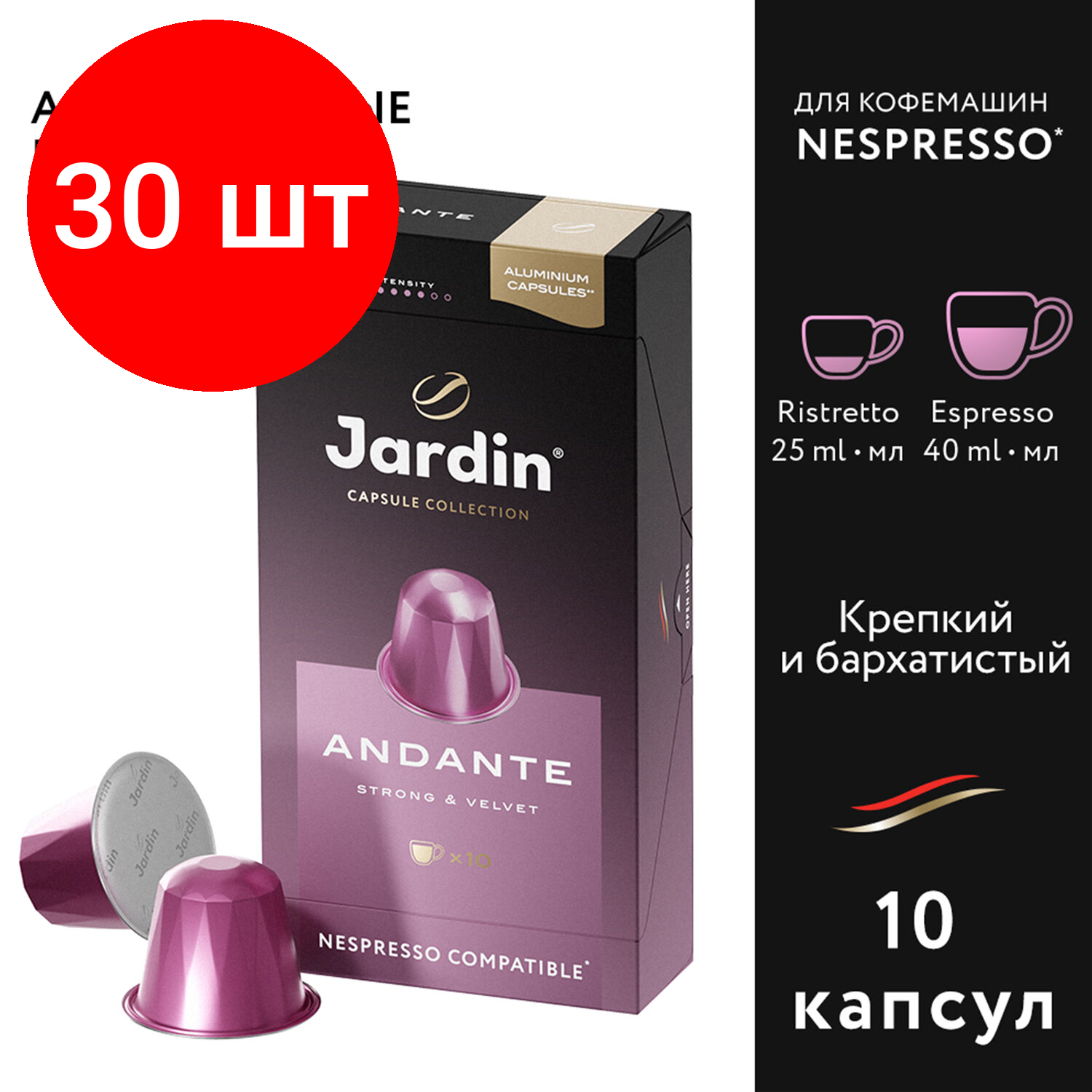 Кофе в капсулах JARDIN "Andante" для кофемашин Nespresso, 10 порций, 1353-10 В комплекте: 1шт.