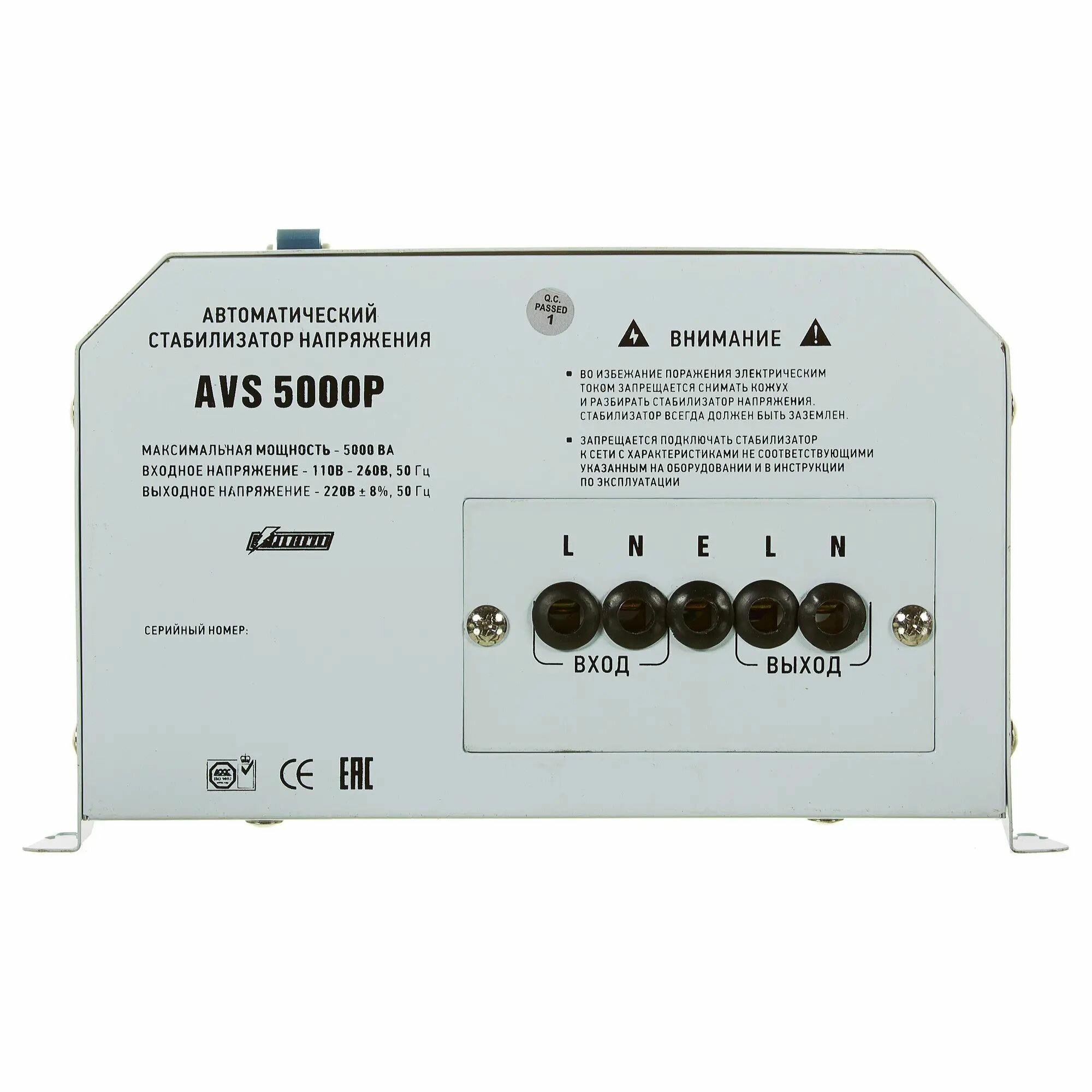 Стабилизатор POWERMAN AVS 5000P, ступенчатый регулятор, цифровые индикаторы уровней напряжения, 5000ВА, 110-260В, максимальный