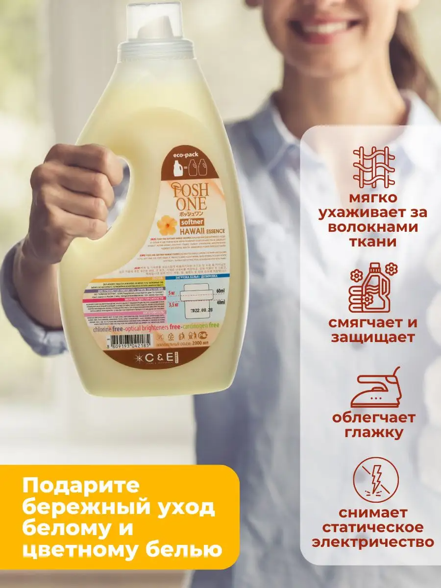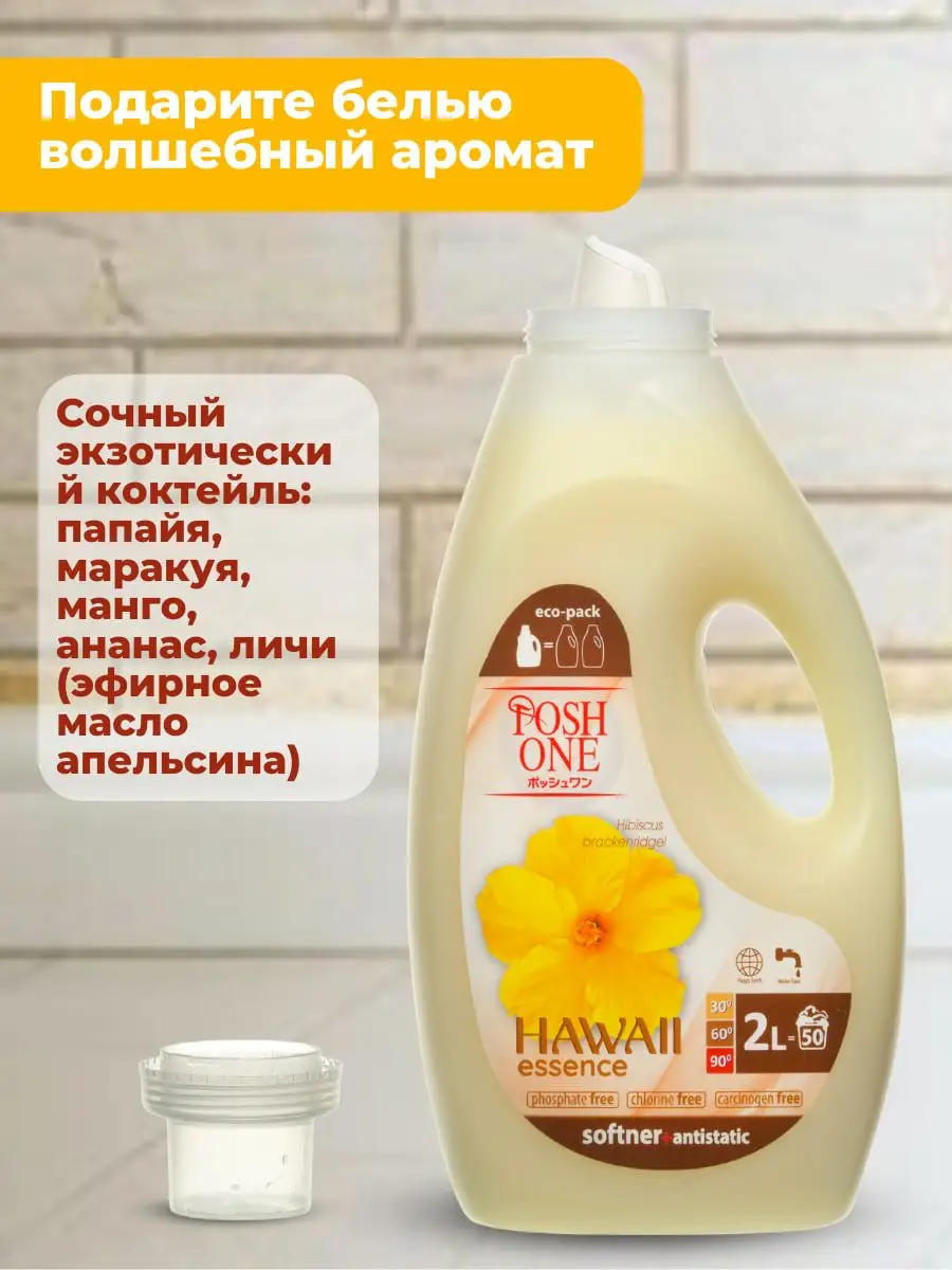 Купить Кондиционер для белья Posh One «Hawaii Essence», для белого и цветного белья, 2 л
