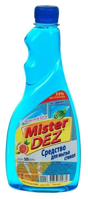 Mister DEZ Средство для мытья стёкол и зеркал Mister Dez "Грейпфрут" сменный блок, 500 мл