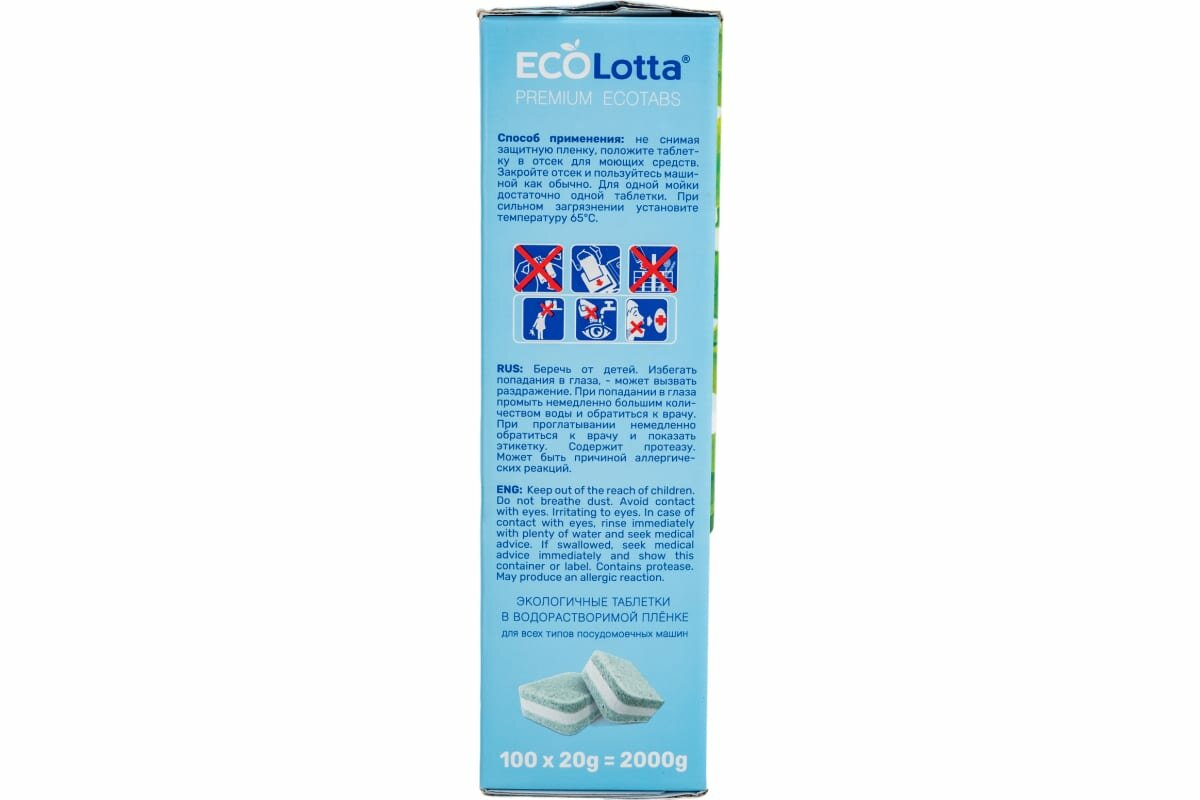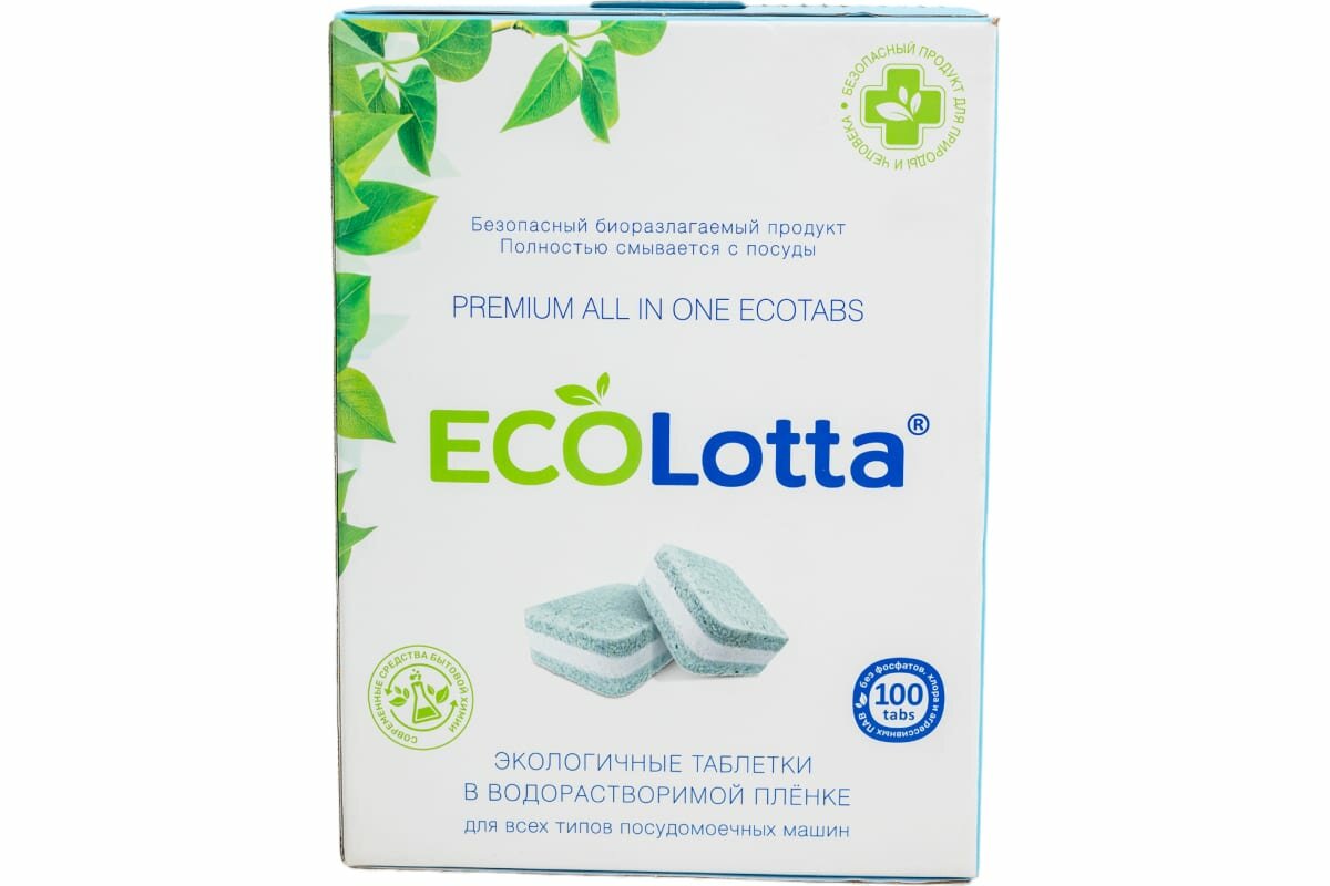Эко таблетки для посудомоечной машины ECOLotta без фосфатов 100шт