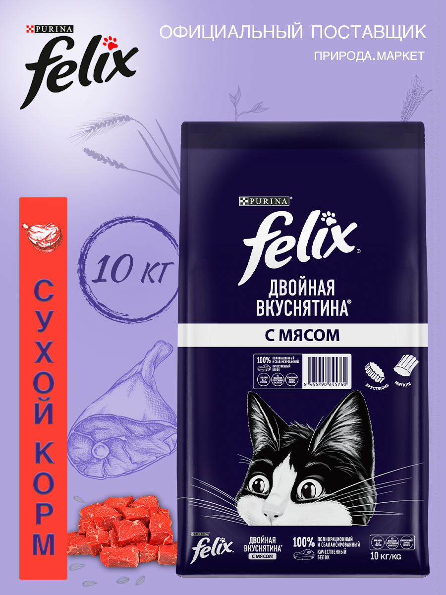 Сухой корм для кошек Felix Двойная Вкуснятина, мясо, 10кг