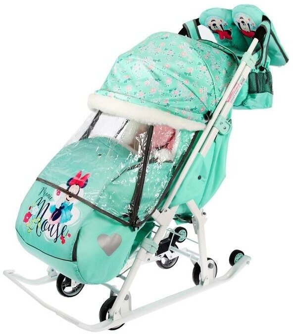 Купить Санки-коляска Nika "Baby 2" (DB2/2) Минни Маус, мятный. ПА