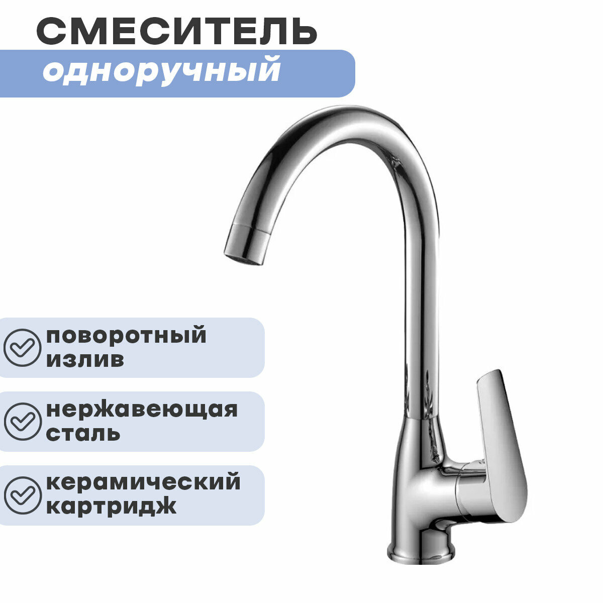 Смеситель одноручный (35мм) для кухни ROSSINKA S35-23 с высоким поворотным изливом, хром