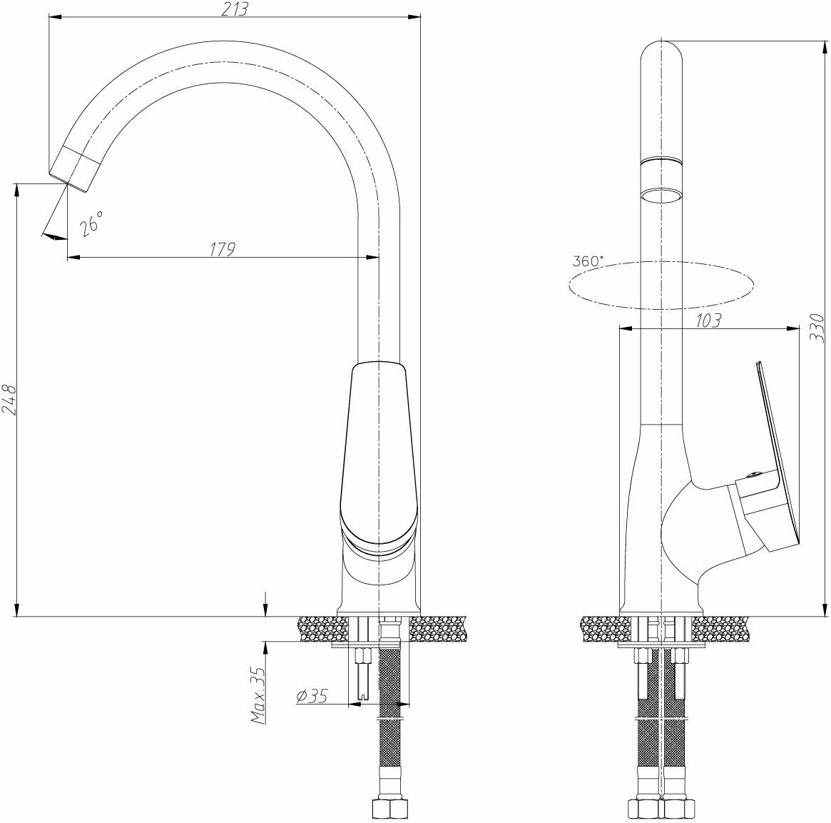 Смеситель Rossinka S S35-23 для кухонной мойки