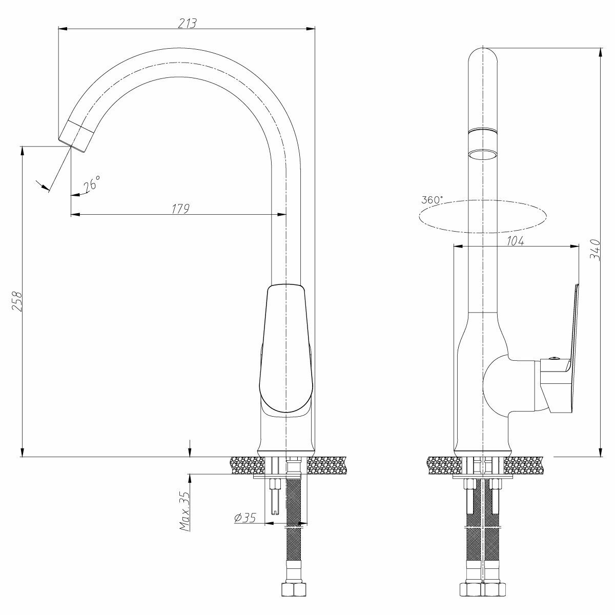 Смеситель для кухни Rossinka S35-24, однорычажный, хром
