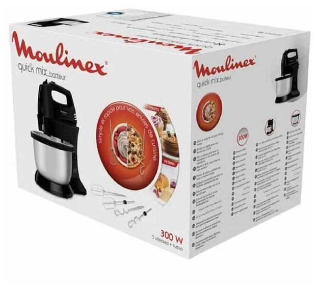Стационарный миксер MOULINEX Quick Mix HM3128B1 300 Вт, металлическая чаша 3.5 л с автовращением, 5 скоростей, режим Турбо интересное: