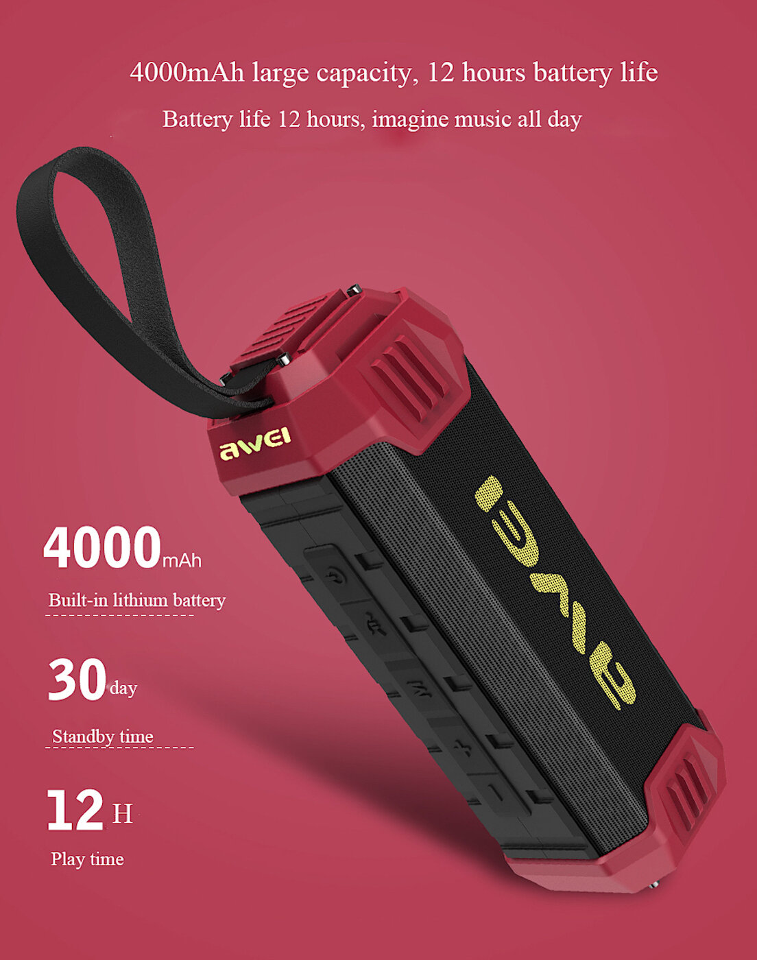 Портативная акустика AWEI Y280 - Влагозащищенный корпус Красная