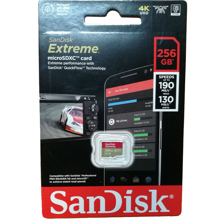 Флеш-карта microSDHC 256Гб Sandisk Extreme for 4K Video on Smartphones, Action Cams & Drones, Class .