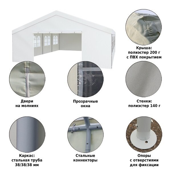 Тент садовый (свадебный) Green Glade 3006 6х8х3,1/2м (полиэстер) белый(6х8х3,1/2м)