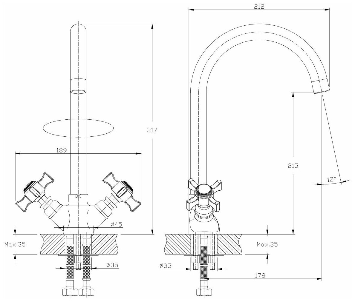 | Диаметр монтажных отверстий | 35 мм |