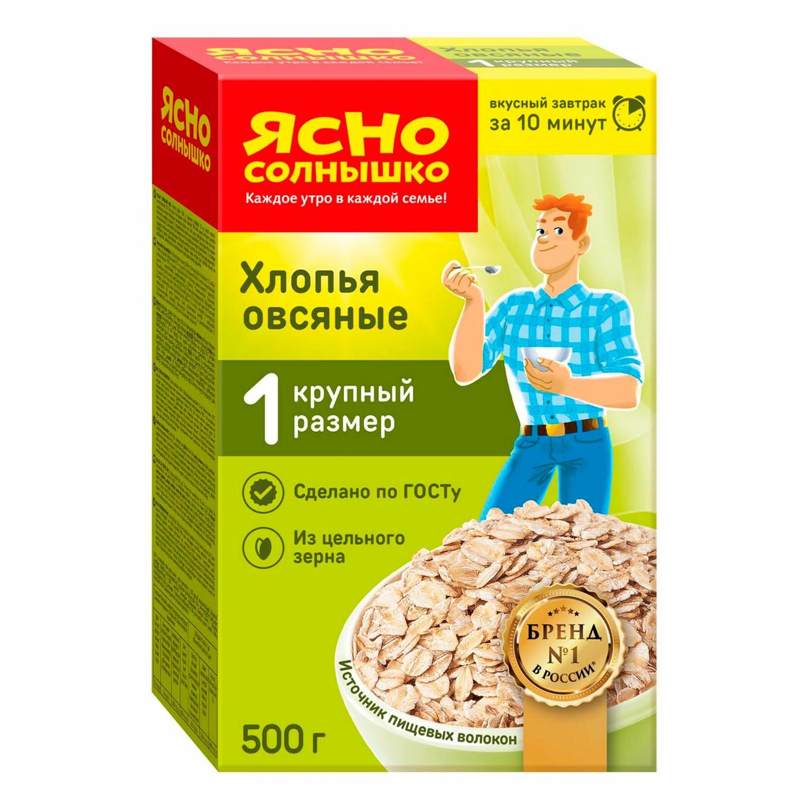 Хлопья Ясно солнышко овсяные №1 крупные 500г интересное: