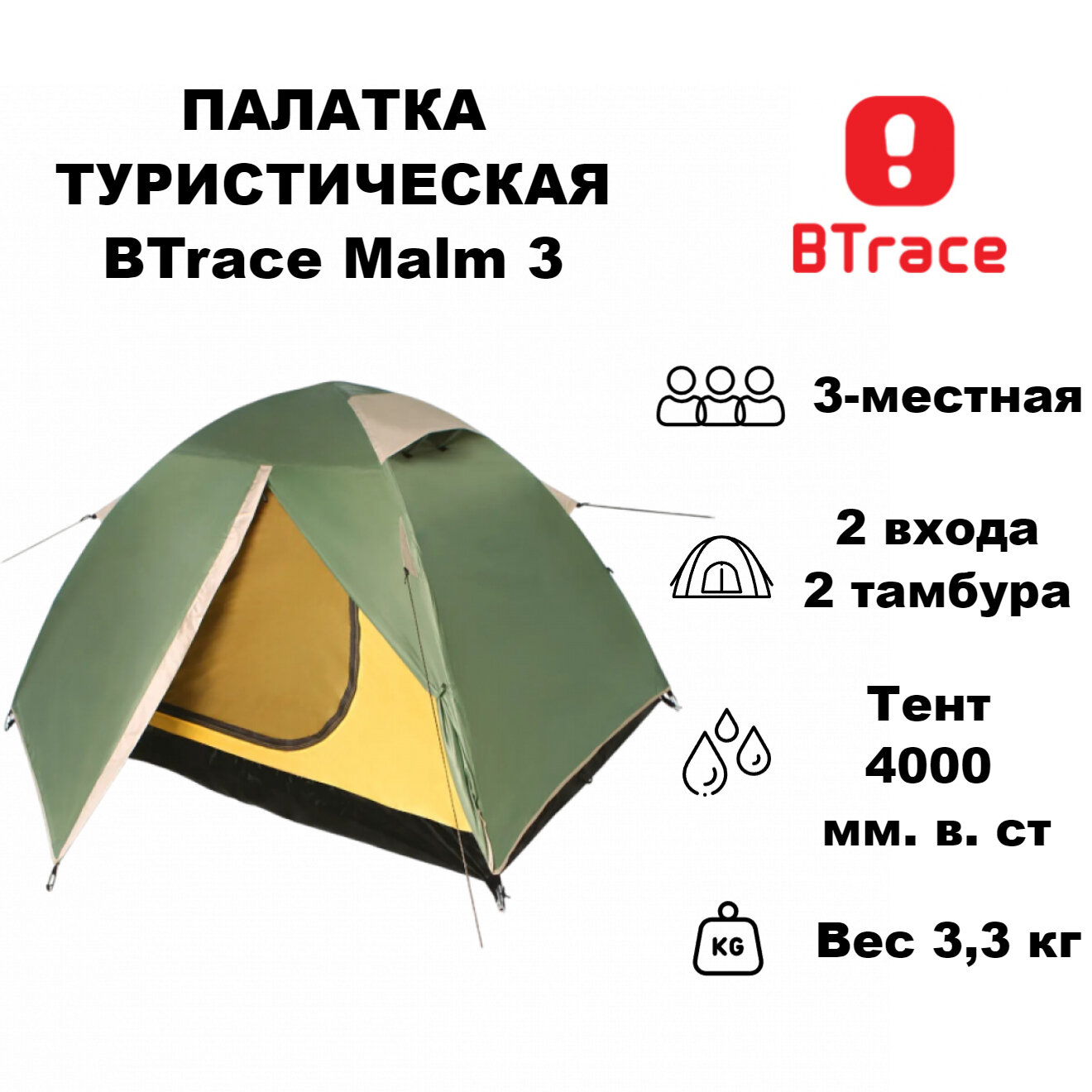 Палатка туристическая BTrace Malm 3 трехместная двухслойна