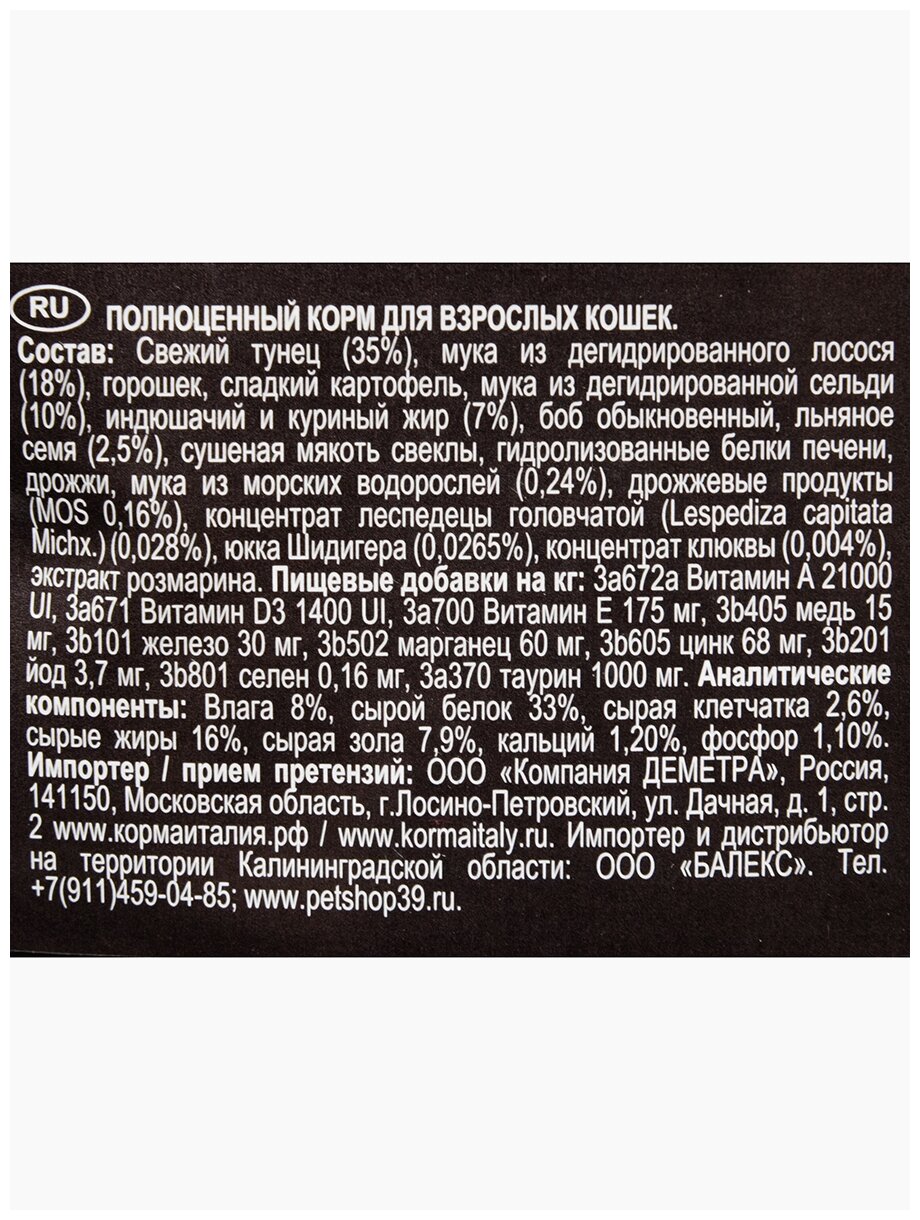 | Отзыв: | Коту корм понравился. Я в свою очередь оценила натуральный состав, в основе которого мясо, хорошую работу пищеварения и гипоаллергенность. Тот факт, что производится в Италии, по европейским стандартам не может не радовать, отдаю себе отчёт за какой продукт плачу достаточно приличные деньги. Едим уже 5 месяцев и всё просто замечательно, причин быть чем-то недовольной не возникало. |