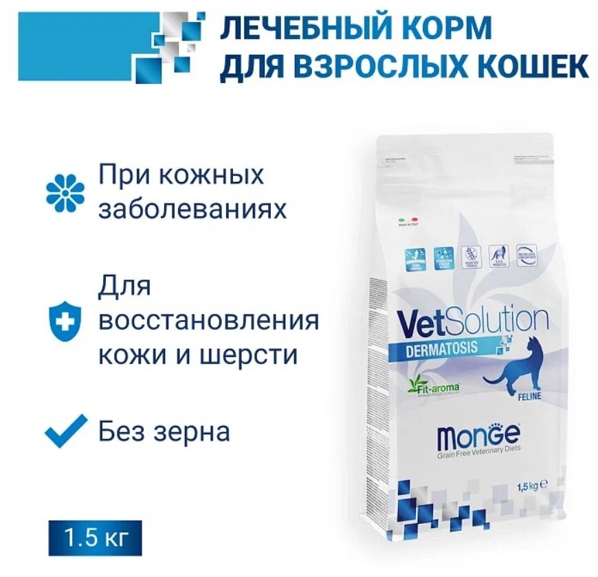 Сухой корм для кошек Monge VetSolution Dermatosis, при проблемах с кожей, беззерновой 1.5 кг