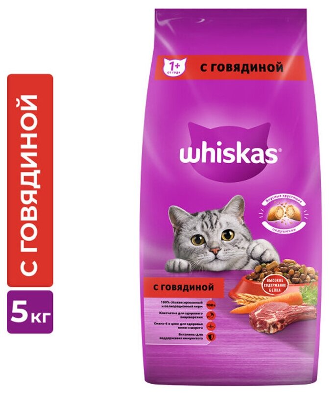 Сухой корм для кошек Whiskas с говядиной 5 кг
