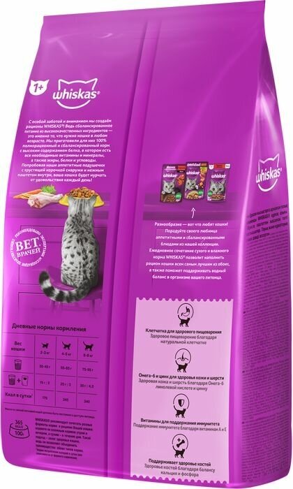 Сухой корм Whiskas для кошек, курица/индейка, подушечки, 5 кг