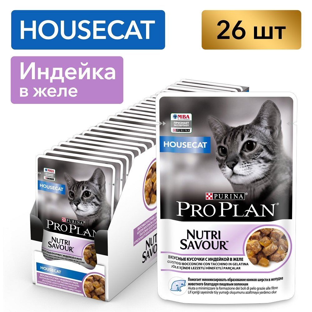 Влажный корм для кошек Pro Plan Nutrisavour Housecat, для живущих в помещении, с индейкой 26 шт. х 85 г (кусочки в желе)
