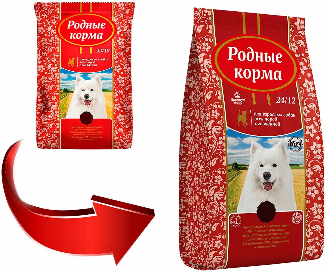Cухой корм для взрослых собак с говядиной, родные корма 22/10 5 русских фунтов 2,045 кг