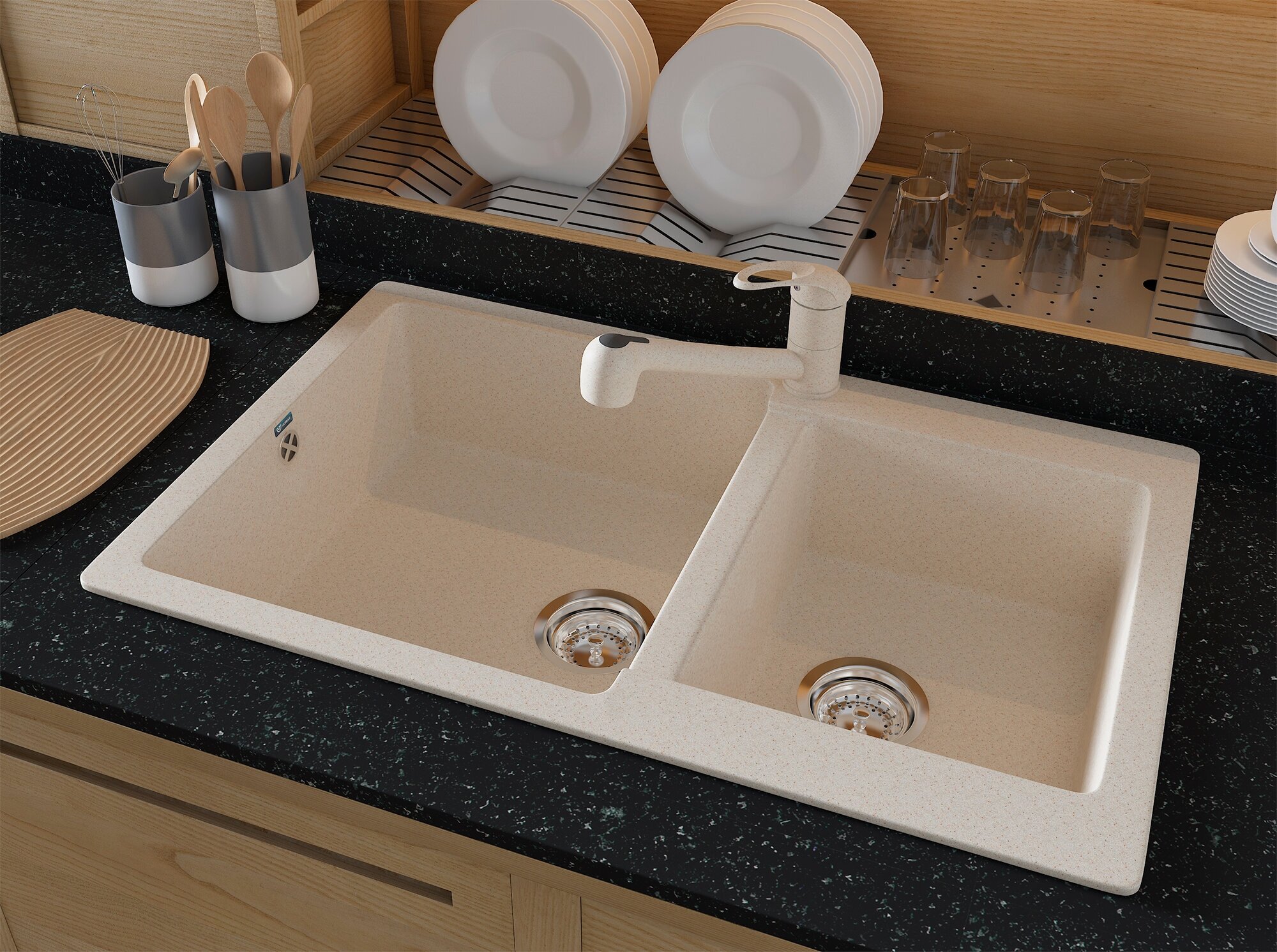 Мойка для кухни из искусственного камня Ulgran U-505-328, бежевый