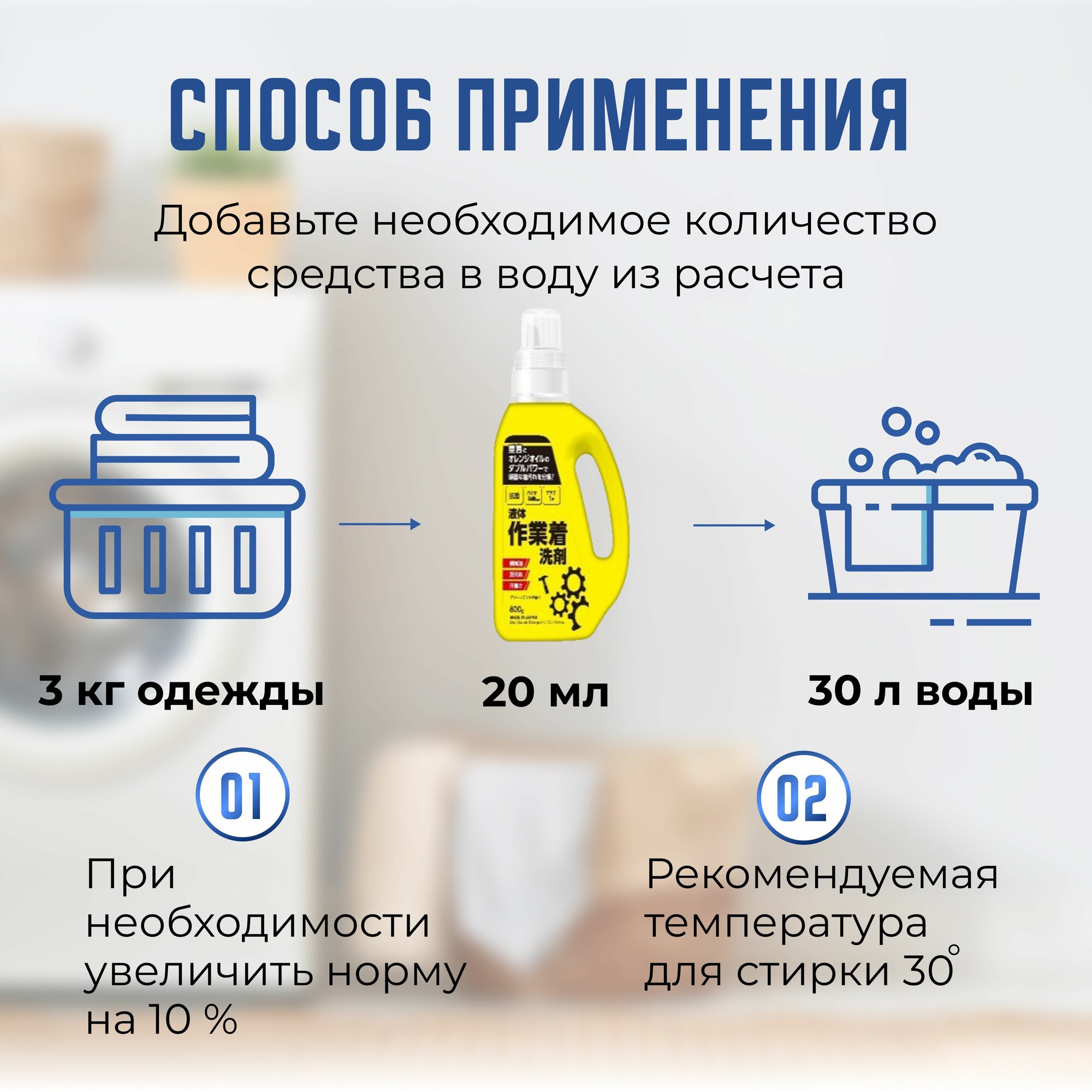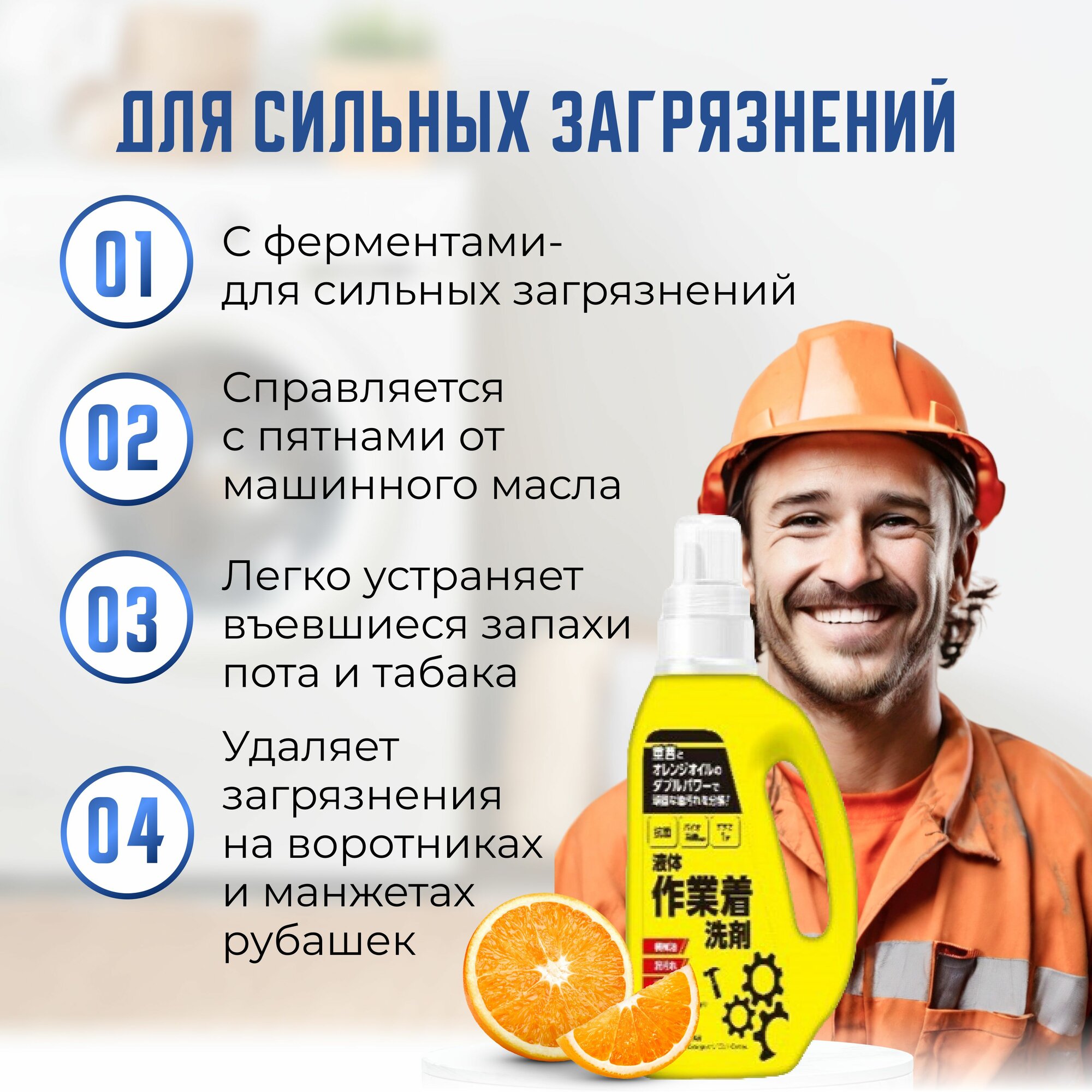 Гель для стирки рабочей и сильнозагрязненной одежды c ферментами 800 мл. MITSUEI