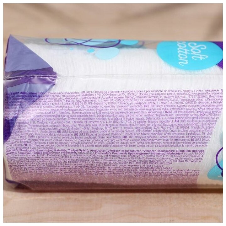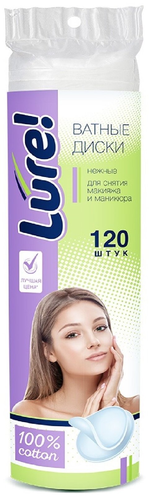Ватные диски Lure! нежные, для снятия макияжа и маникюра, 120 шт., пакет
