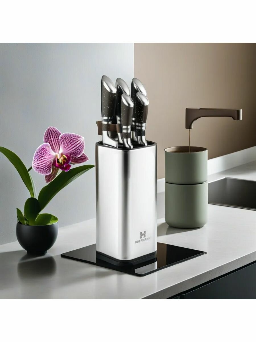 Набор кухонных ножей из нержавеющей стали с подставкой Hoffmann, 7 предметов