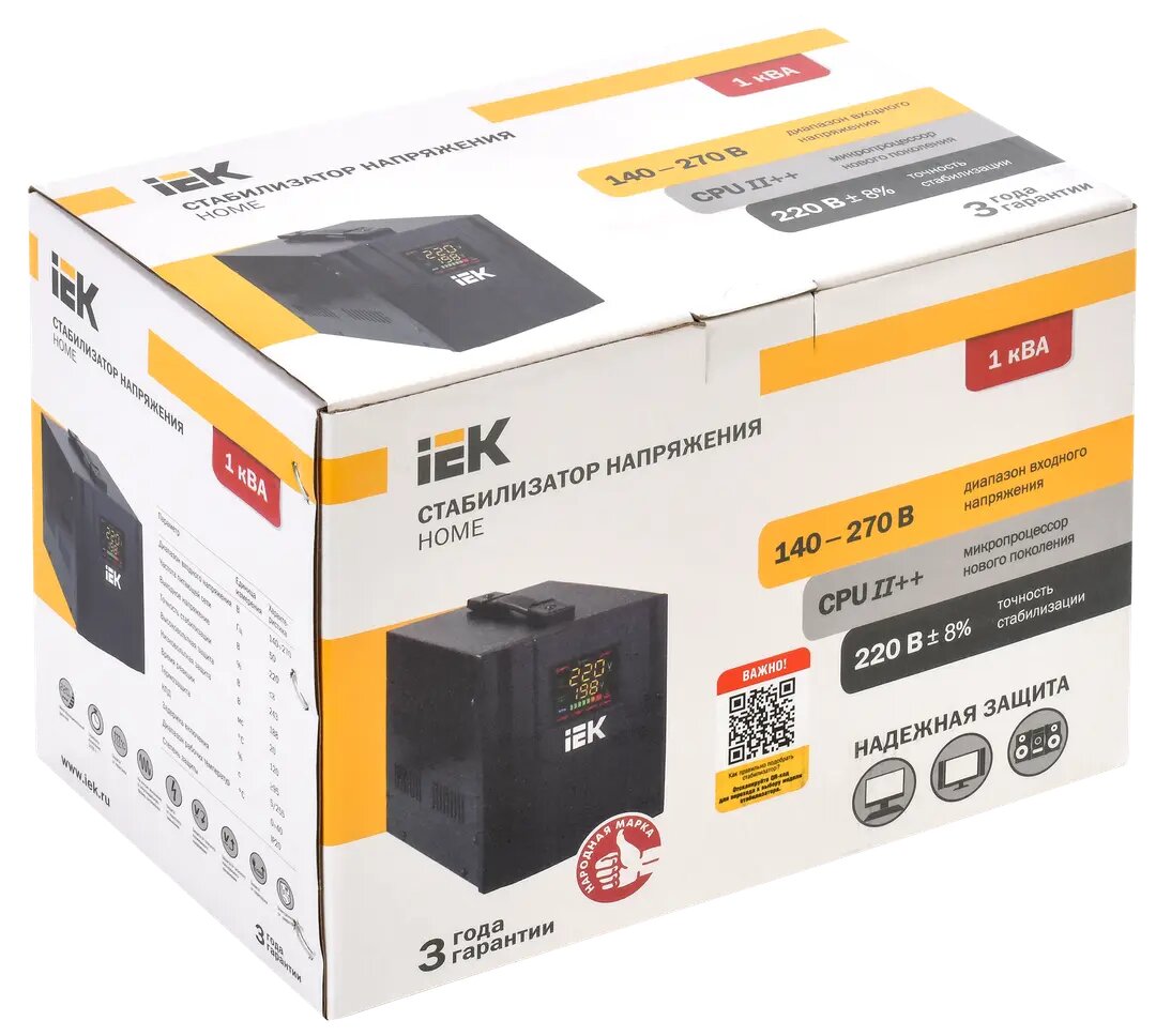 Стабилизатор напряжения серии HOME 1 кВА (СНР1-0-1), IEK IVS20-1-01000 (1 шт.)