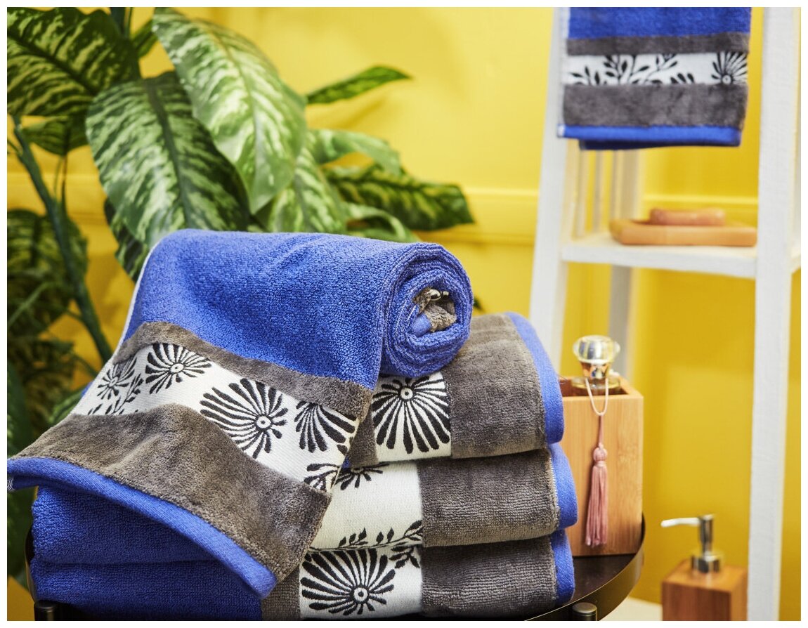Полотенце махровое Fern, цветы, синий; размер: 70 х 130