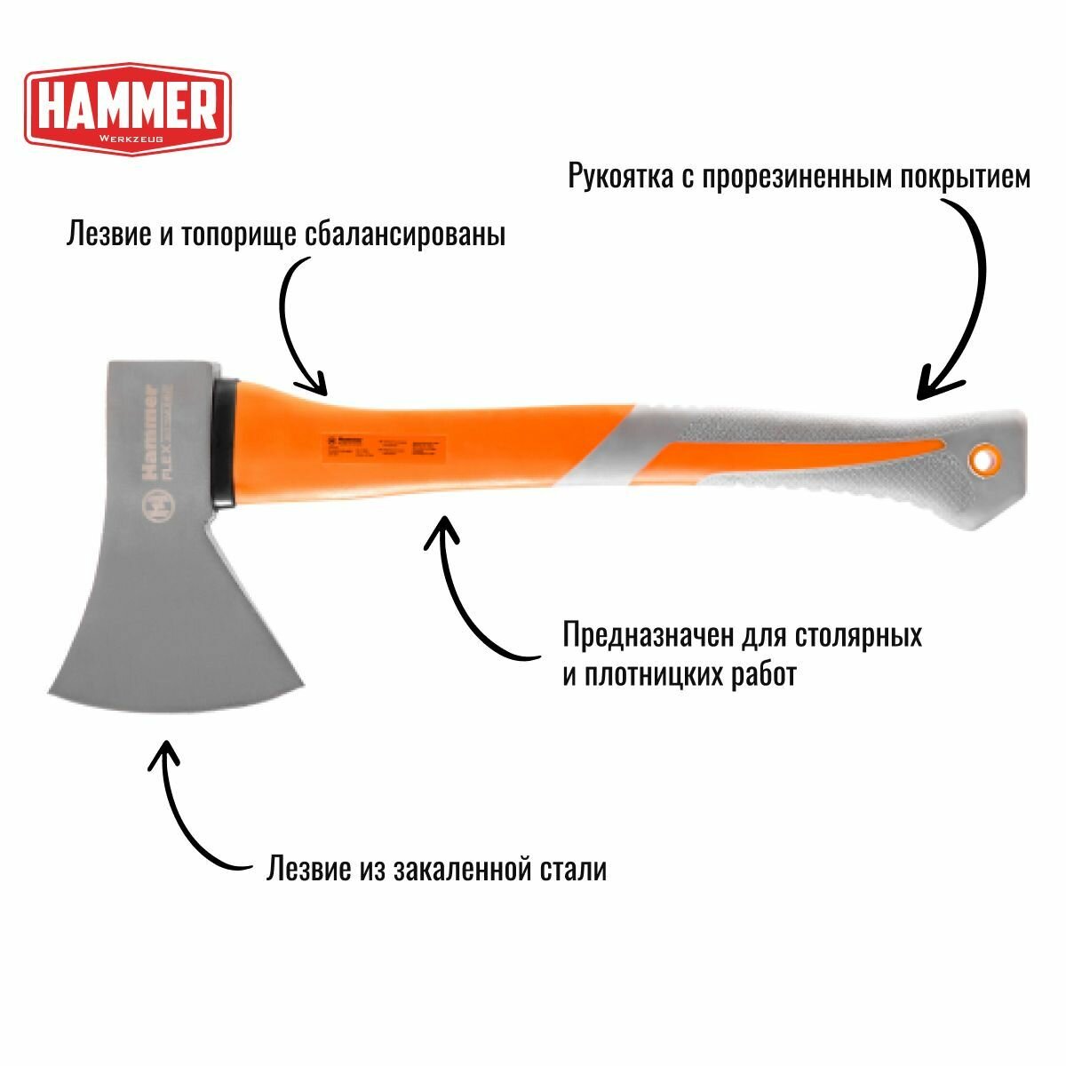 Расходный материал Hammer_tools Топор Hammer Flex универсальный 1000г, 430мм