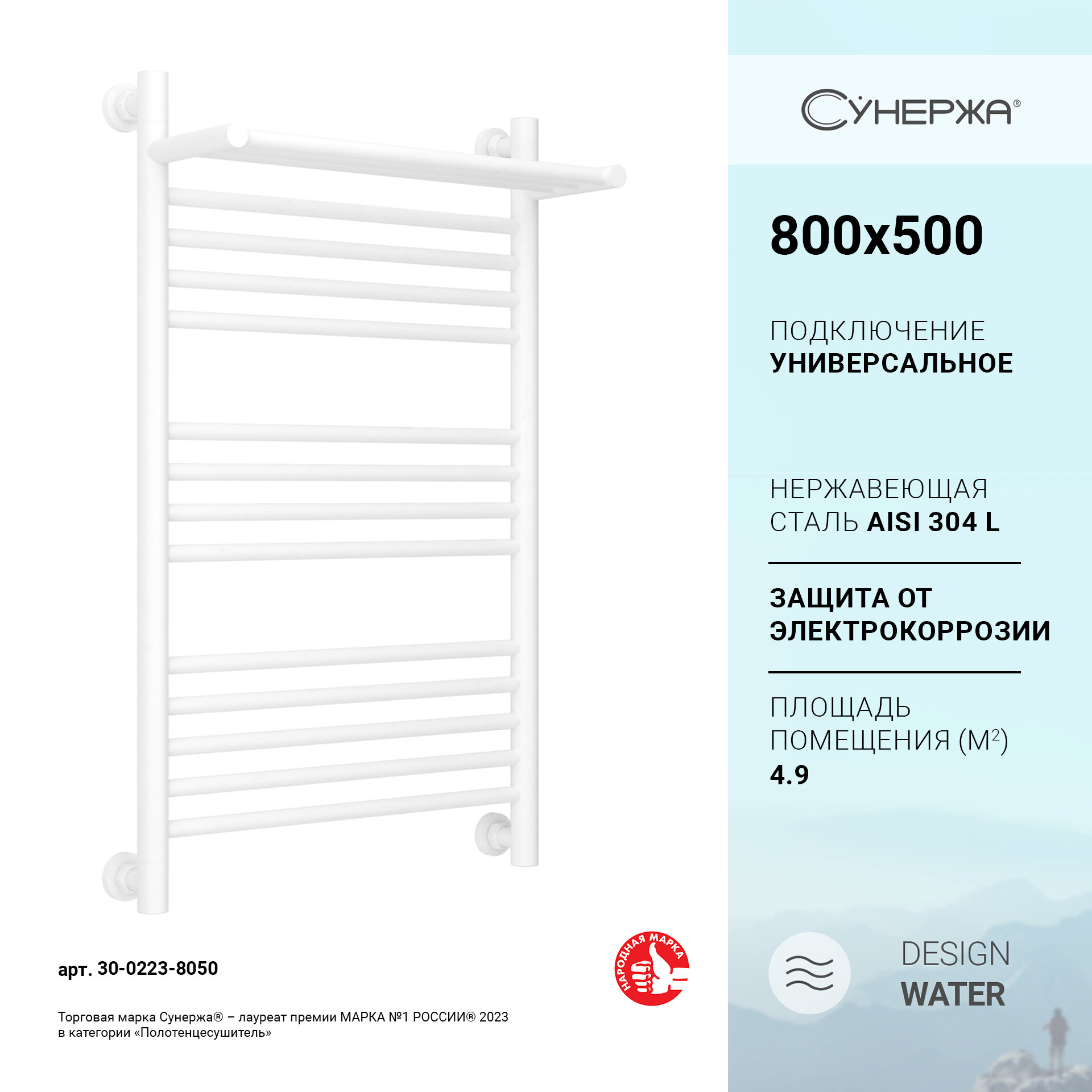 Полотенцесушитель водяной 800x500 белый матовый Сунержа Богема с полкой+ 30-0223-8050