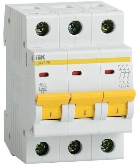 Выключатель автоматический модульный 3п B 6А 4.5кА ВА47-29 IEK MVA20-3-006-B (1 шт.)