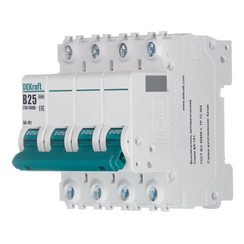 Автоматический выключатель Dekraft BA-101 (11044DEK) 4Р 25А тип B 4,5 кА 230-400 В на DIN-рейку